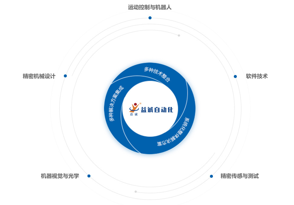 益誠自動化成立于2007年,已通過ISO9001:2015質(zhì)量管理體系認證,是一家高新技術(shù)企業(yè),東莞市工程技術(shù)研究中心,設(shè)有一個博士工作站。總公司位于廣東省東莞市,在沈陽、蘇州、印度尼西亞設(shè)有分公司,在香港特別行政區(qū)和德國設(shè)有辦事處。并與2021年在浙江、韶關(guān)自建智能制造工業(yè)科技園。益誠自成立以來專業(yè)從事非標自動化生產(chǎn)設(shè)備、視覺定位與檢測、工業(yè)多軸機器人的研發(fā)、制造與服務(wù),以及為生產(chǎn)企業(yè)提供智能制造整體解決方案。益誠擁有一支由100余名專業(yè)工程開發(fā)人員組成的研發(fā)團隊。在汽車配件、電子電器開關(guān)插座、精密微型馬達、散熱風(fēng)扇、機械手等生產(chǎn)領(lǐng)域,為各生產(chǎn)企業(yè)提供多元化的自動化解決方案。為使益誠的研發(fā)能力能得到持續(xù)提升,為市場提供更優(yōu)質(zhì)的服務(wù),益誠與國內(nèi)多家高等院校建立了”產(chǎn)、學(xué)、研“合作關(guān)系,并與德國著名的自動化設(shè)備制造商”SUSO Automation“結(jié)成戰(zhàn)略合作伙伴。
